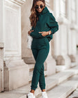 Klassieke trainingspakset gemaakt van een aangename hoogwaardige gebreide stof is een ideale keuze voor alle vrouwen die zich comfortabel willen voelen in een trainingspak en er tegelijkertijd stijlvol uit willen zien, ja, dat kan! De bovenkant van het trainingspak is een hoodie met een kangoeroezak, waar je met succes je telefoon of portemonnee in kwijt kunt. De lange mouwen, die je vrij kunt oprollen, zijn afgewerkt met een elastische band. De sweater past perfect bij een high-waisted jeans of een klassieke tuberok. De broek heeft slanke lange pijpen, die je rondingen benadrukken en je echt vrouwelijk laten voelen in ons trainingspak. Ze hebben een trekkoord in de taille en pijpen. De broek past perfect bij een denim katana en sneakers.